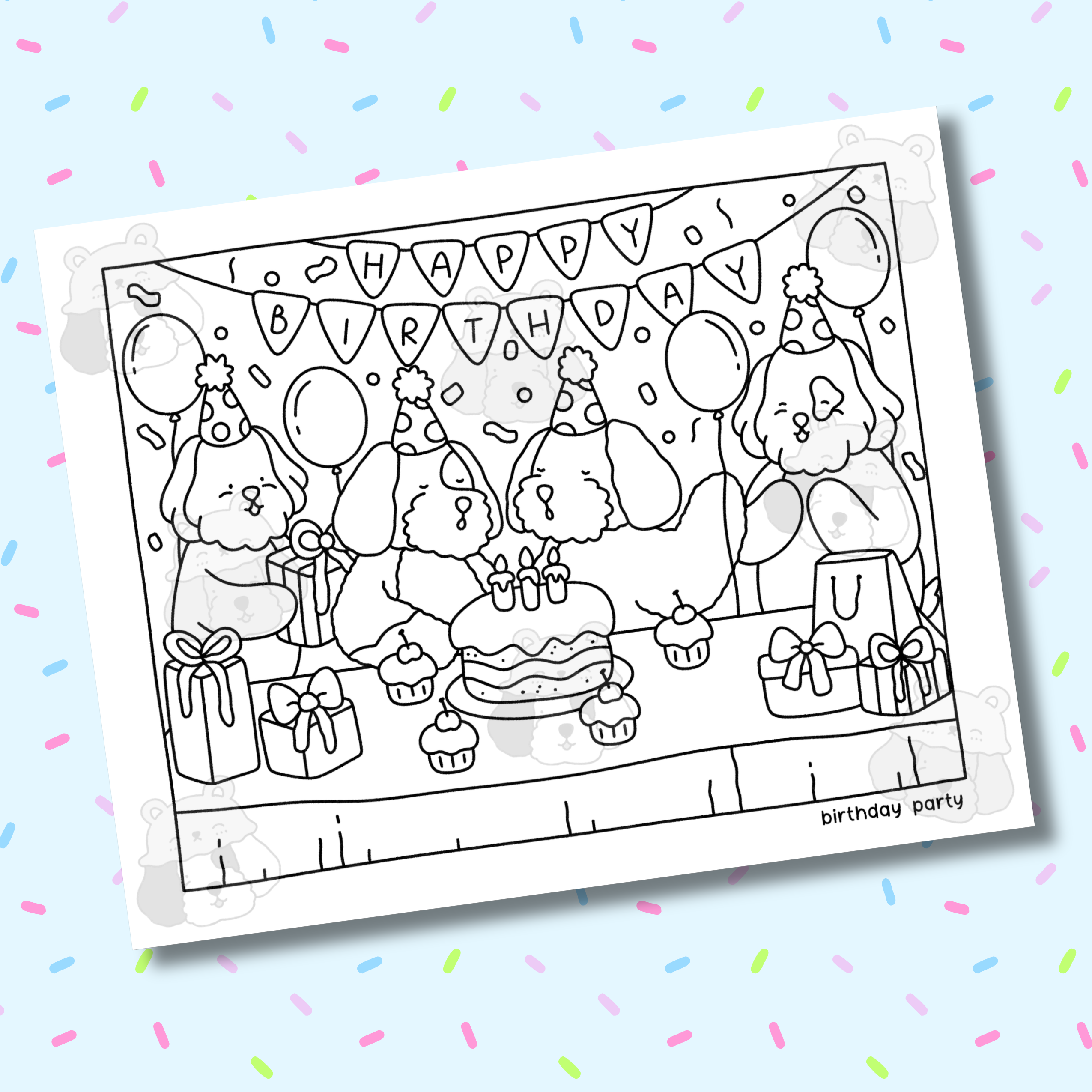 Celebrate Chloe & Maisy's birthday month with this birthday party digital download coloring page 🎉 Featuring Chloe, Maisy, Coco, and April, this birthday party scene captures the warmth and joy of a classic celebration—simple, cheerful, and made to bring back that familiar birthday feeling.