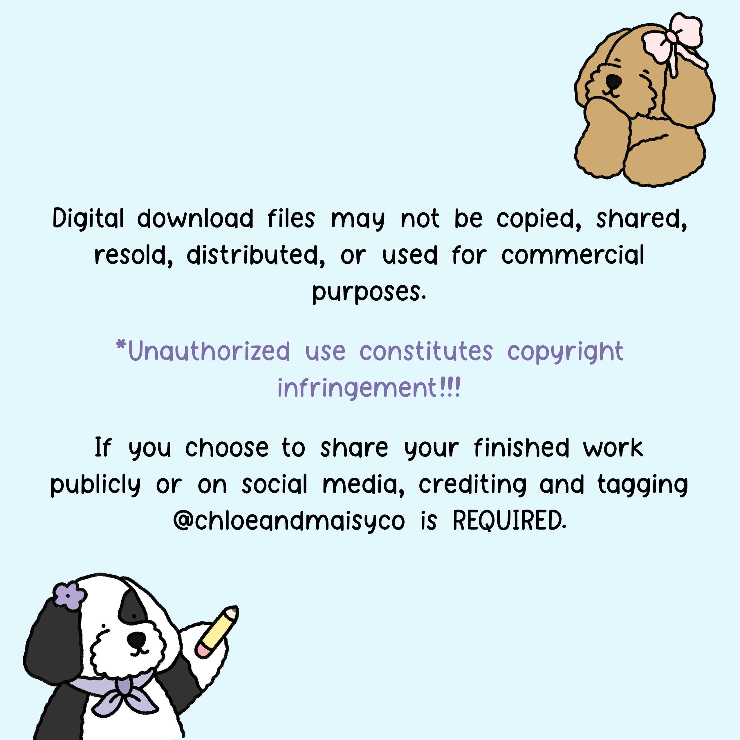 This digital coloring page is for personal use only and may not be shared, reposted, resold, or distributed in any form. If you share your finished, colored page on social media, @chloeandmaisyco must be credited and tagged.